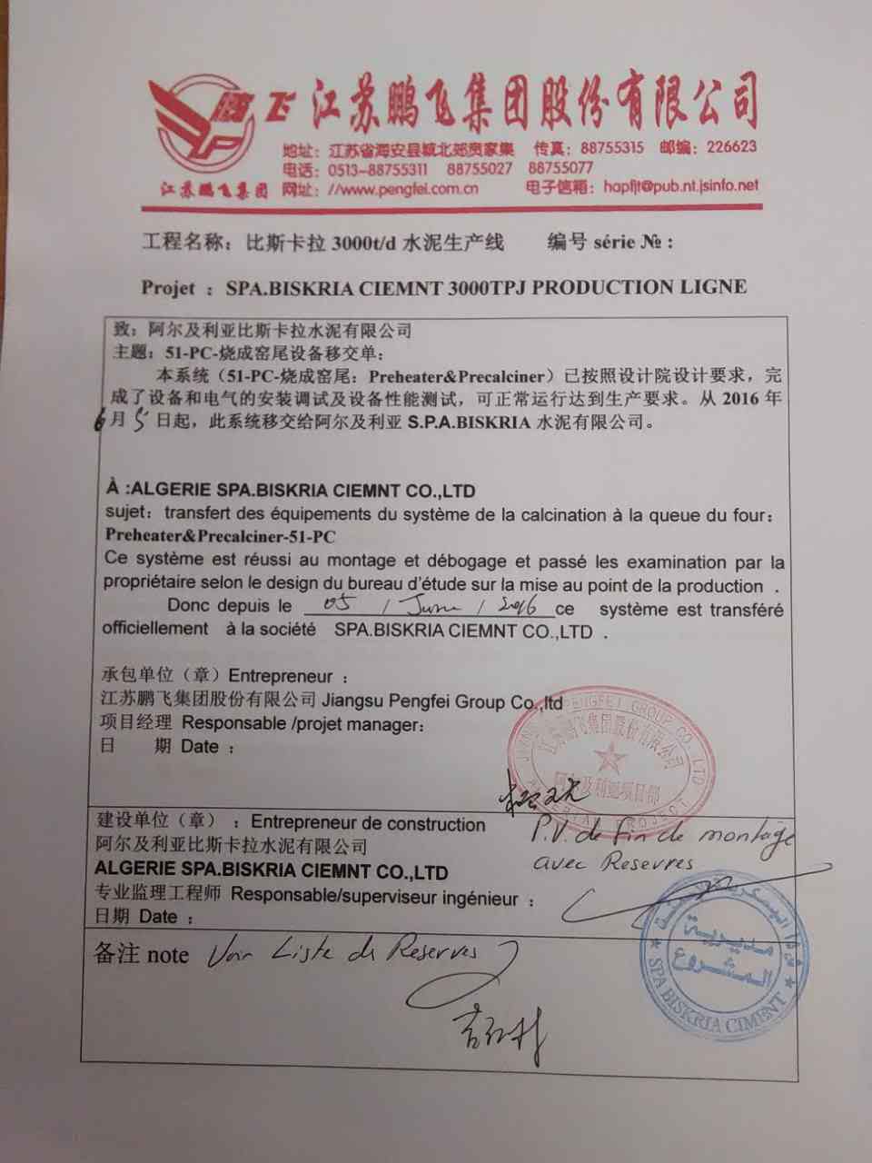SPA.BISKRIA CIEMNT 3000TPJ PRODUCTION LIGNE