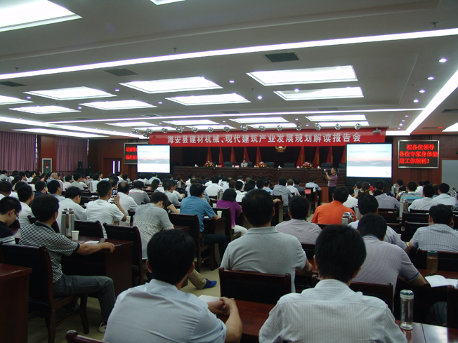 2012年8月3日,海安縣建材機械、現代建筑產業(yè)發(fā)展規(guī)劃解讀報告會在縣政府四樓會議室隆重舉行。中國建材工業(yè)規(guī)劃研究院高智、郝梅平兩位資深教授就當前建材機械、現代化建筑產業(yè)當前現狀和未來發(fā)展方向進行分析,準確定位我縣建材行業(yè)發(fā)展走向,現場解讀建材裝備和現代建筑規(guī)劃報告。中國建筑材料工業(yè)規(guī)劃研究院院長劉長發(fā),海安縣政府副縣長盧忠平,政協副主席蔡祝平出席會議并發(fā)表講話,我縣重點企業(yè)