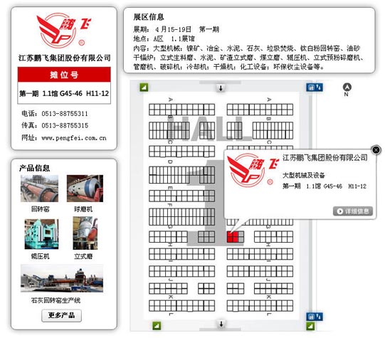 江蘇鵬飛集團(tuán)在第119屆廣交會(huì)上精心布置展位,印發(fā)所產(chǎn)各類成套設(shè)備的介紹手冊(cè),并運(yùn)用全景水泥生產(chǎn)線模型現(xiàn)場(chǎng)演示,委派具有多年工作經(jīng)驗(yàn)的銷售、技術(shù)、售后等專業(yè)工作人員為顧客詳細(xì)介紹新產(chǎn)品、新技術(shù),全面分析解答各類設(shè)備從購(gòu)買到投產(chǎn)使用以及售后服務(wù)等每個(gè)環(huán)節(jié)的問(wèn)題,為您排疑解難,與您達(dá)成共識(shí)。同時(shí),也希望能和更多的國(guó)內(nèi)外公司加強(qiáng)聯(lián)系,互相合作,為客戶提供更加完美的產(chǎn)品。