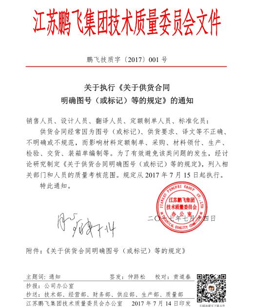 本規(guī)定由江蘇鵬飛集團技術(shù)質(zhì)量委員會歸口。