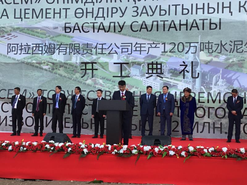 2018年05月18日,哈薩克斯坦阿拉西姆有限責任公司年產(chǎn)120萬噸水泥生產(chǎn)線開工典禮勝利召開。江蘇鵬飛集團股份有限公司總經(jīng)理助理施鵬宇先生等一行多人參加。