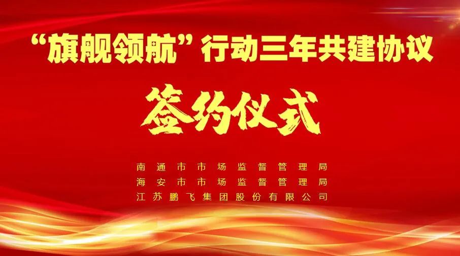 3月25日,江蘇鵬飛集團(tuán)與南通市市場監(jiān)管局、海安市市場監(jiān)管局共同簽署“旗艦領(lǐng)航”行動三年共建協(xié)議。