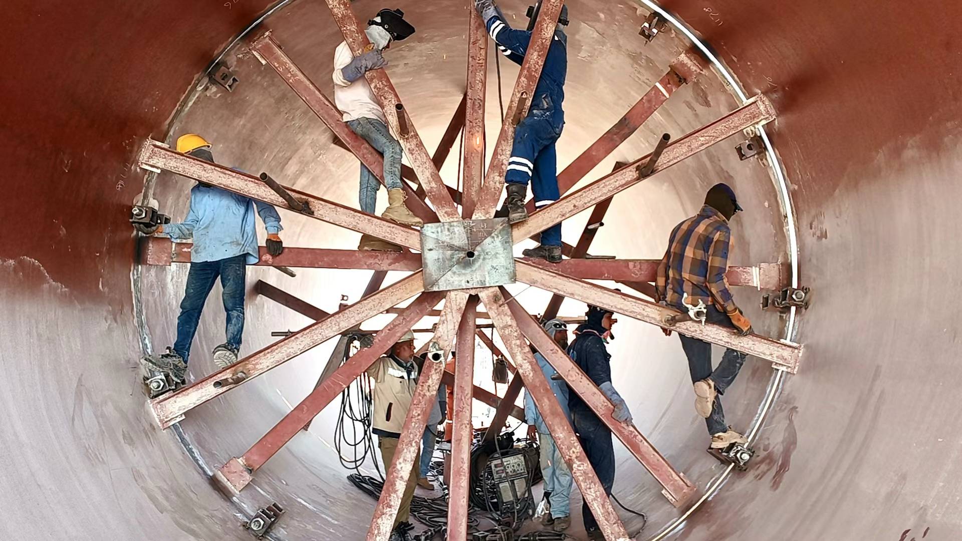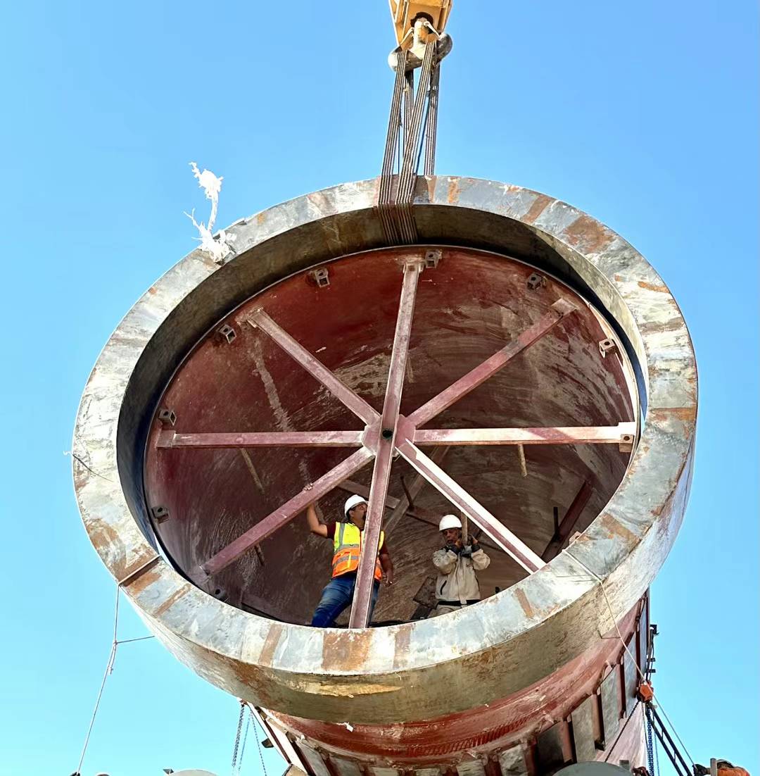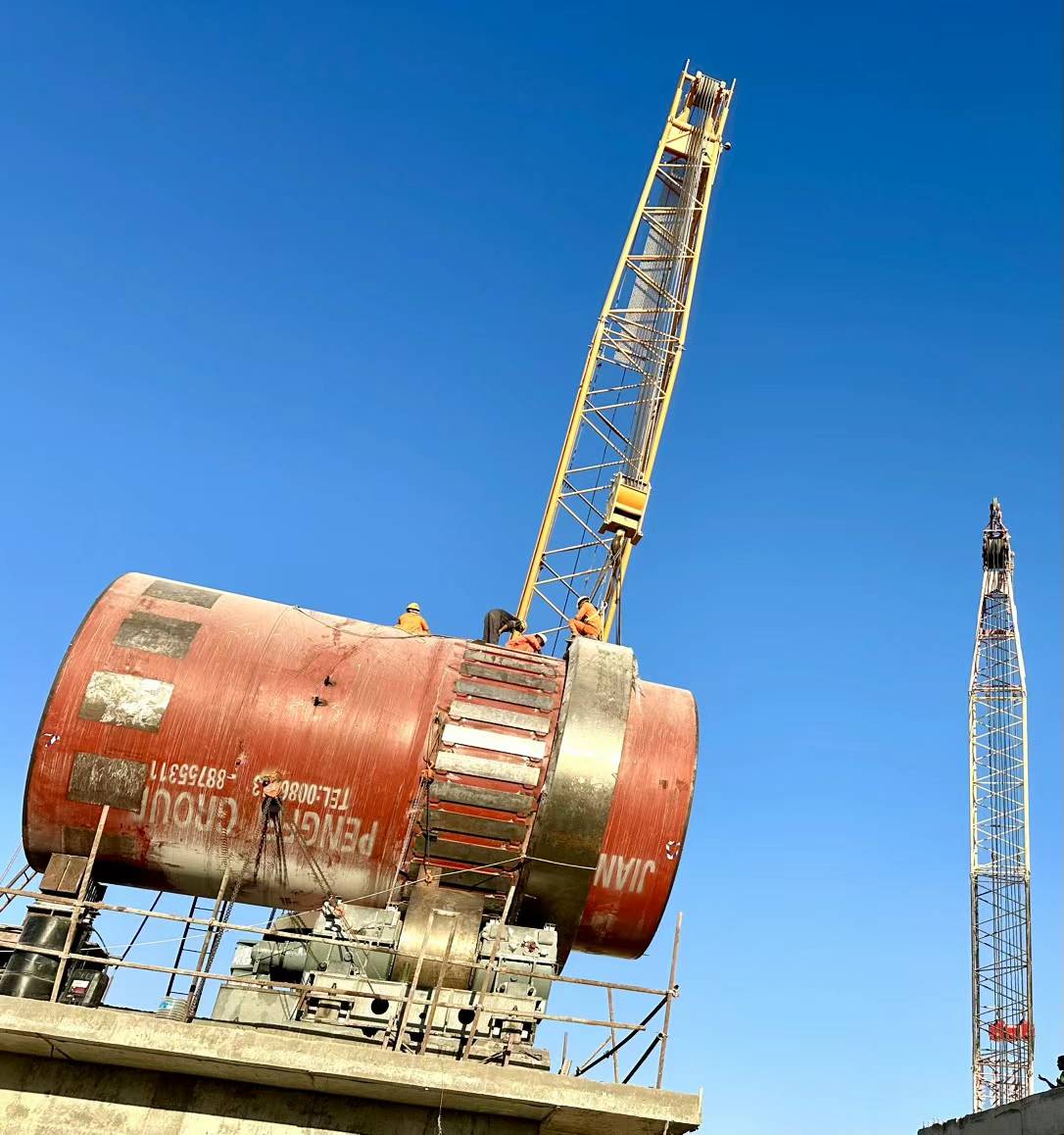 2、埃及氧化鋅項目回轉(zhuǎn)窯順利吊裝完成。